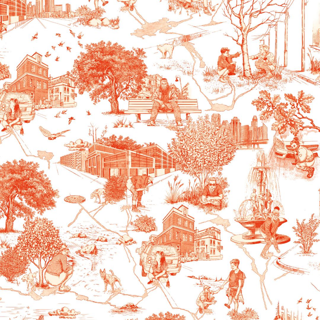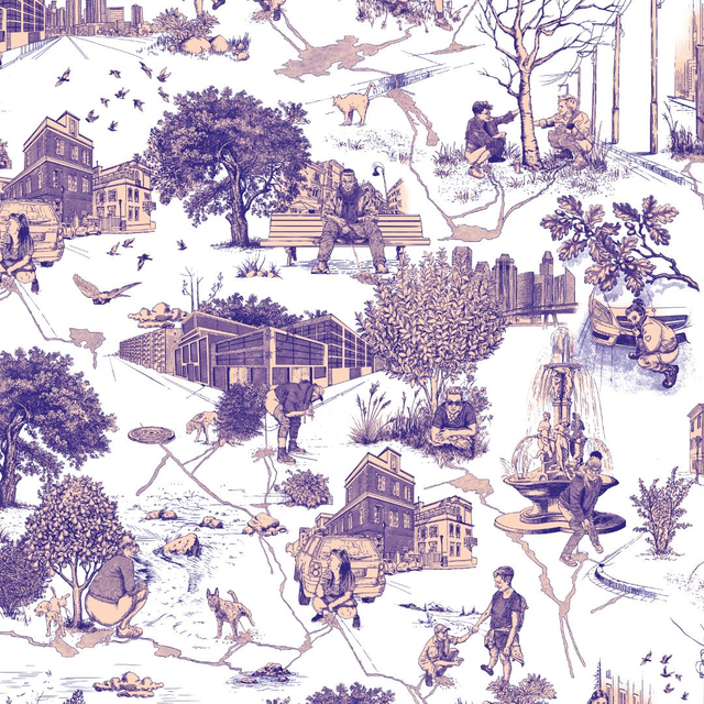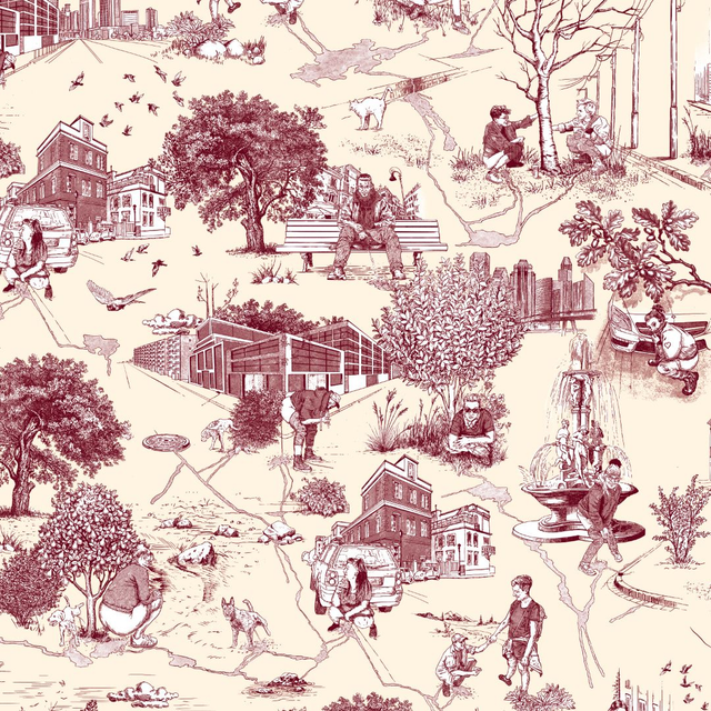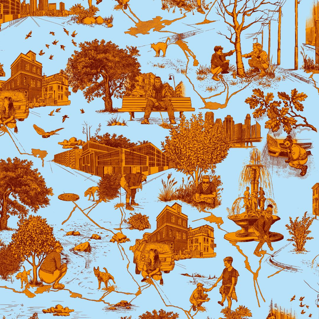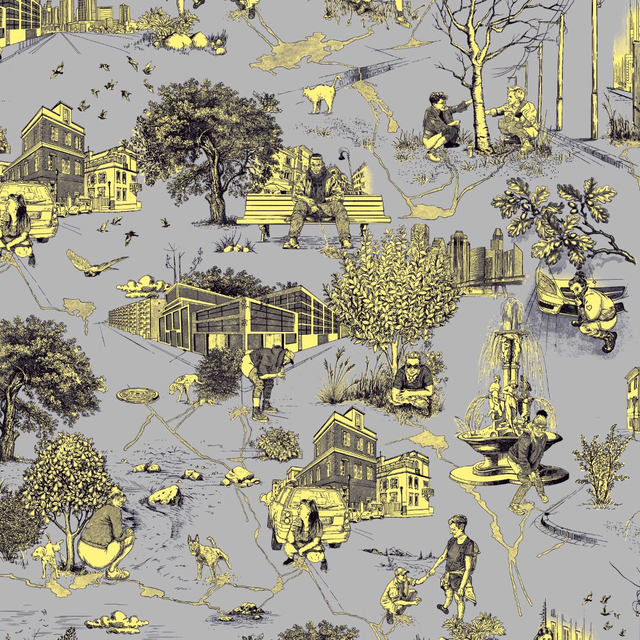 Toile de Jouy Pisseurses, détournement punk d’un monument de l’élégance à la française.
